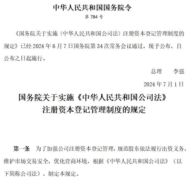 國務(wù)院關(guān)于實施《中華人民共和國公司法》 注冊資本登記管理制度